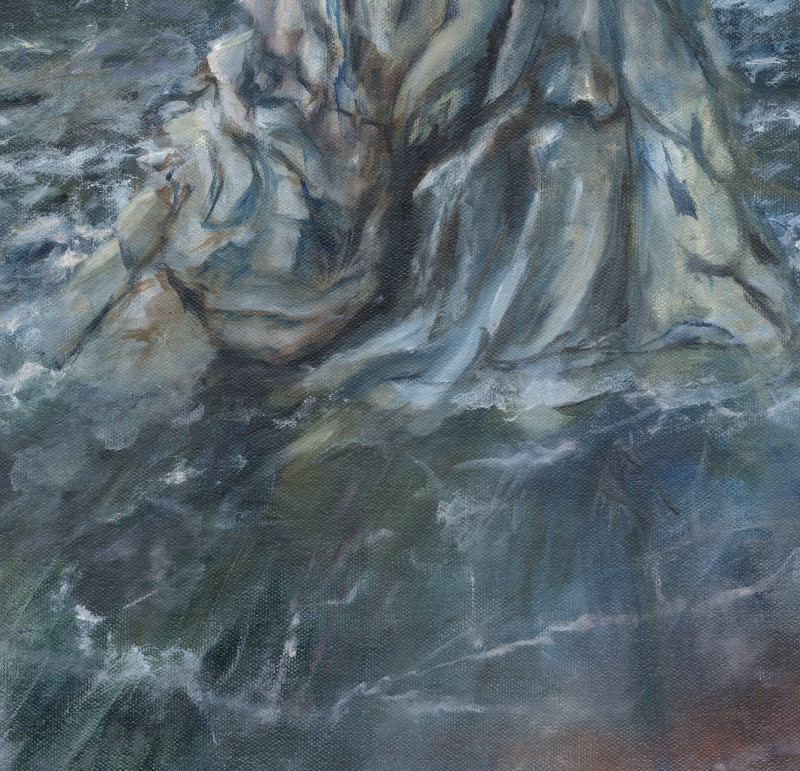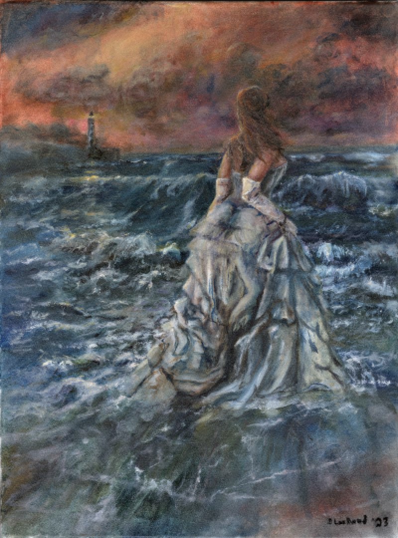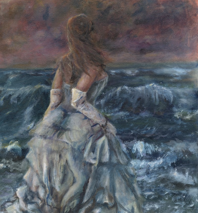 A night at Cape Hatteras - is she casting herself in the sea, or just frolicking in the seafoam? My original oil painting was completed 2023