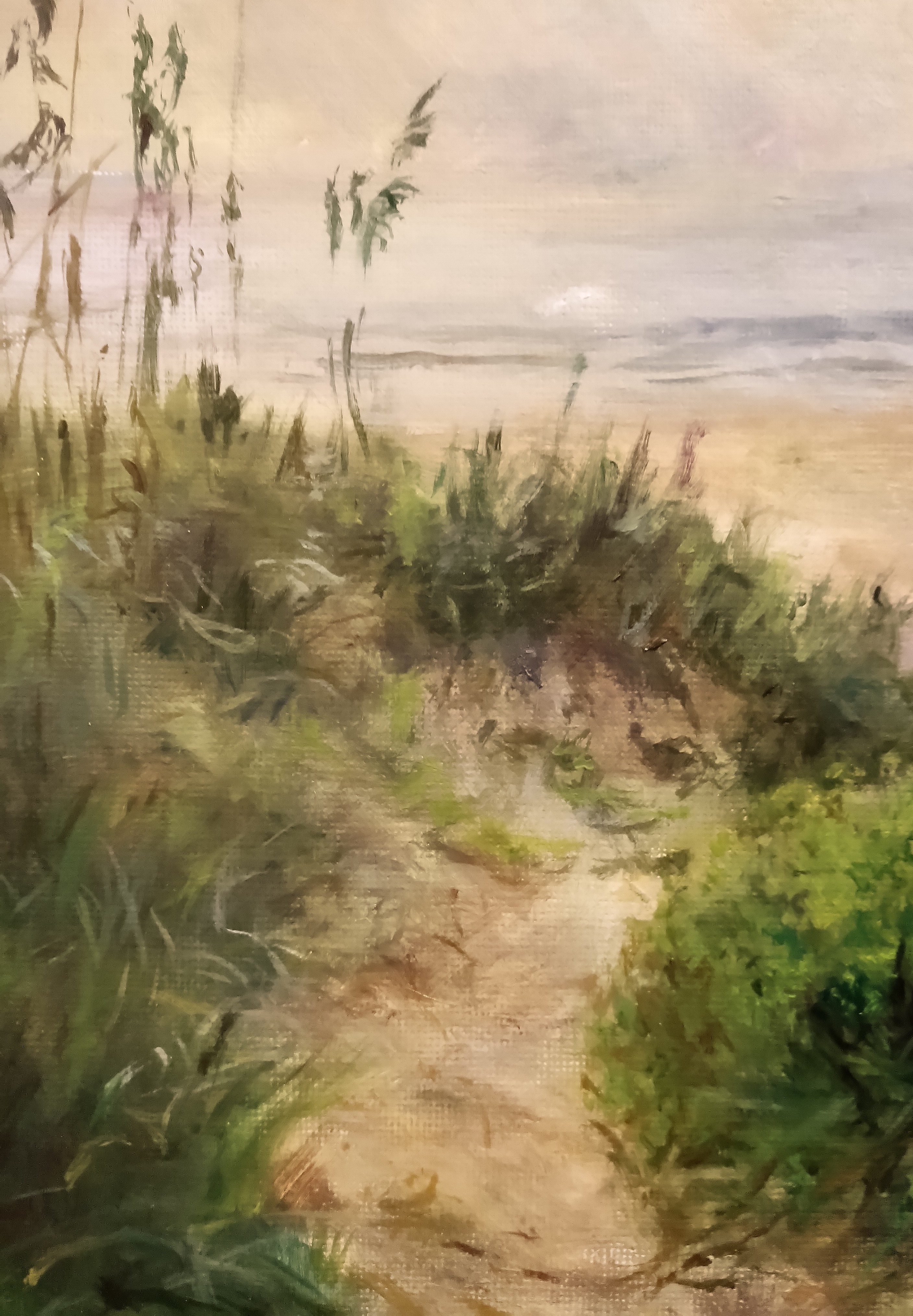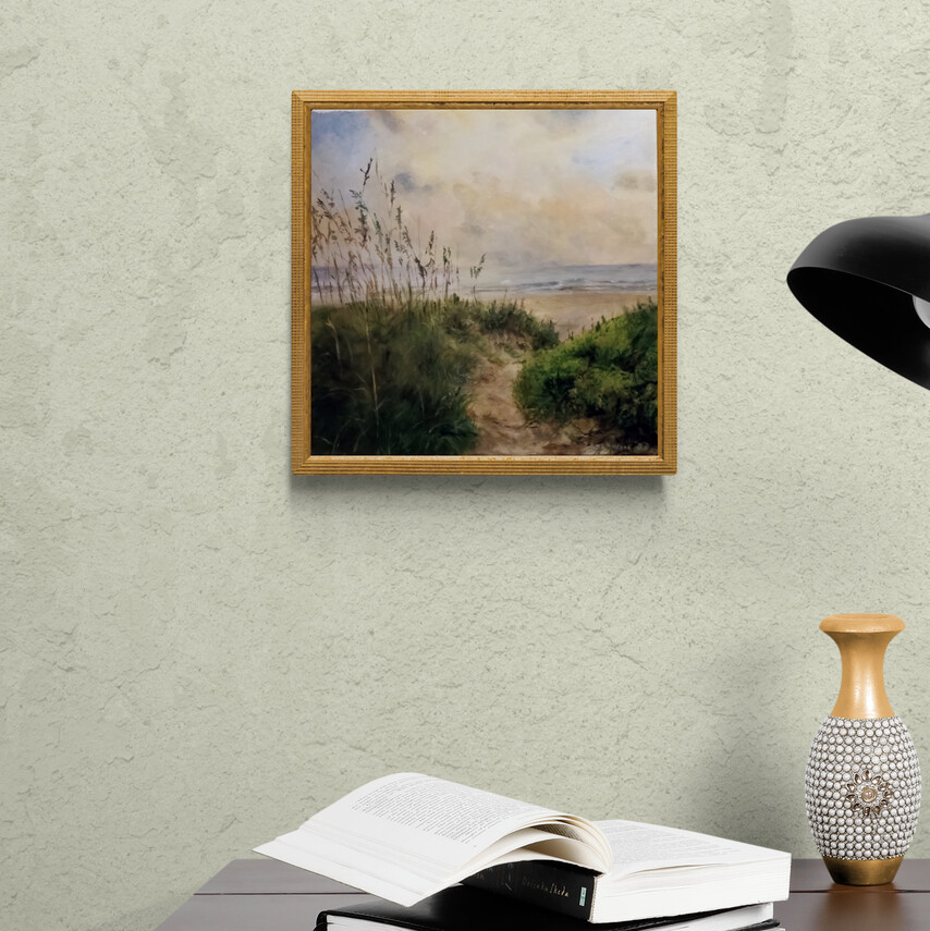 Thanks for looking at my original oil painting, Beach Path. It is 12*12 inches and was inspired by the beautiful North Carolina Outer Banks. Smell the salt air and escape the stresses of daily life. An early morning walk to the beach over the dunes as the sun reflects on the water and the sea breeze blows the grasses, that wonderful feeling of release as the waves break in their ceaseless motion. Perfect for the office or home.