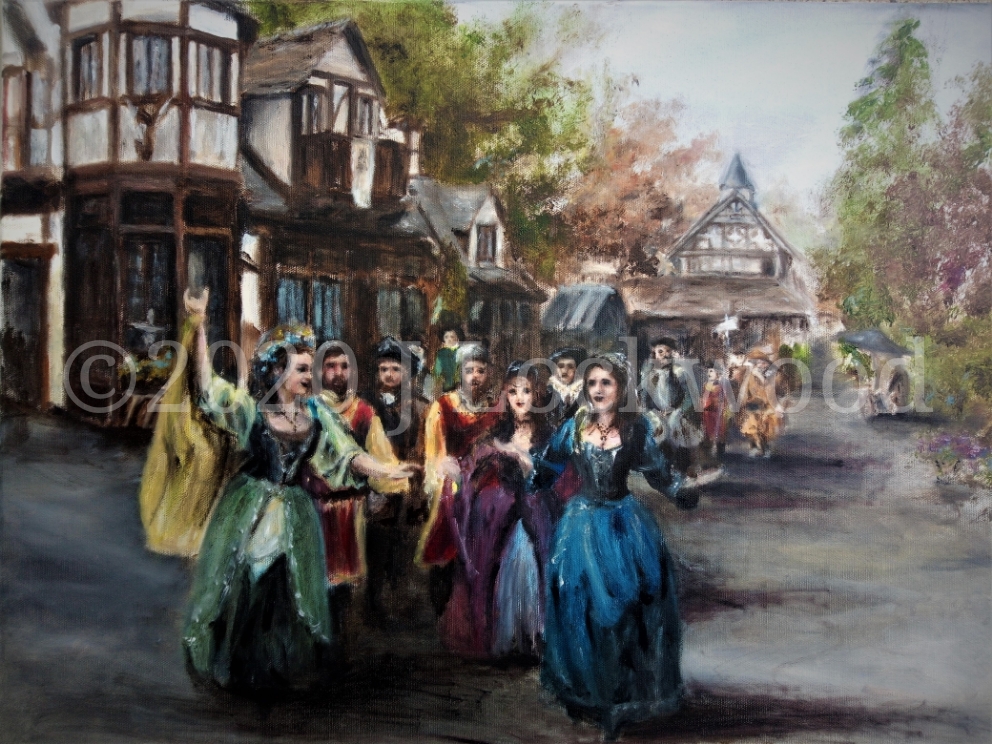 "A Day at the Faire", the excited group enjoys a beautiful day at the Renaissance Festival. With many happy memories of multiple Ren Faires, the background is based on the PA Ren Faire at Mt Hope.